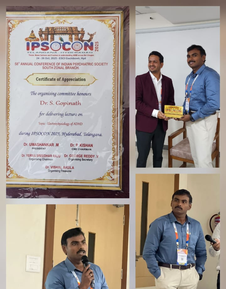 Consultant Psychiatrist, Dr S Gopinath, delivered a speech on Electrophysiology of ADHD at the prestigious national level South Zone conference, IPSOCON 2025 at Hyderabad. #chennaimindclinic #psychiatristnearme #madipakkam #neurodivergence